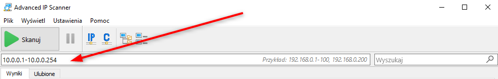 Uruchamiamy program, w wskazane pole wpisujemy zakres naszego IP. W większości przypadków będzie to: