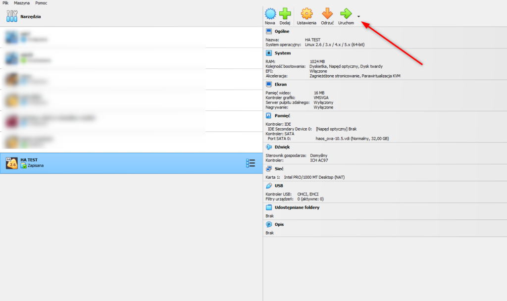 Co dalej? Pobrany plik wypakowujemy i możemy przystąpić do uruchomienia naszego HA. W tym celu uruchamiamy Oracle VM VirtualBox i dodajmy nową maszynę. Instrukcja znajduje się w filmiku poniżej: