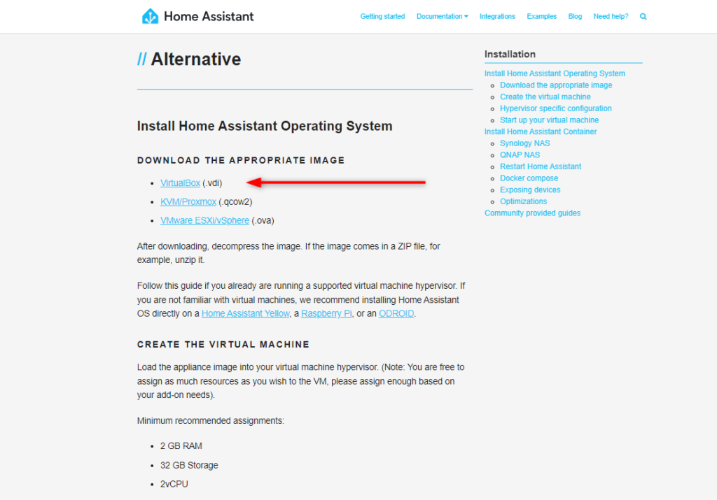 Po prawidłowej instalacji VirtualBox-a przechodzimy na stronę Home Assistant i pobieramy odpowiedni obraz (link):