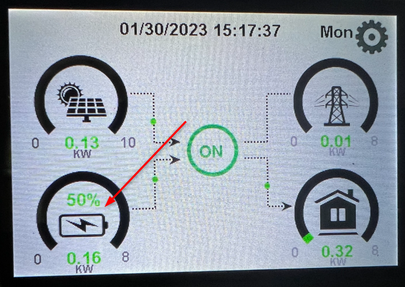 Parametr Shutdown (2) – możemy ustawić na 10% – jeżeli nie mamy dostępu do sieci (pracujemy w offgrid) falownik wyłączy się gdy bateria osiągnie wcześniej wspomniane 10%.